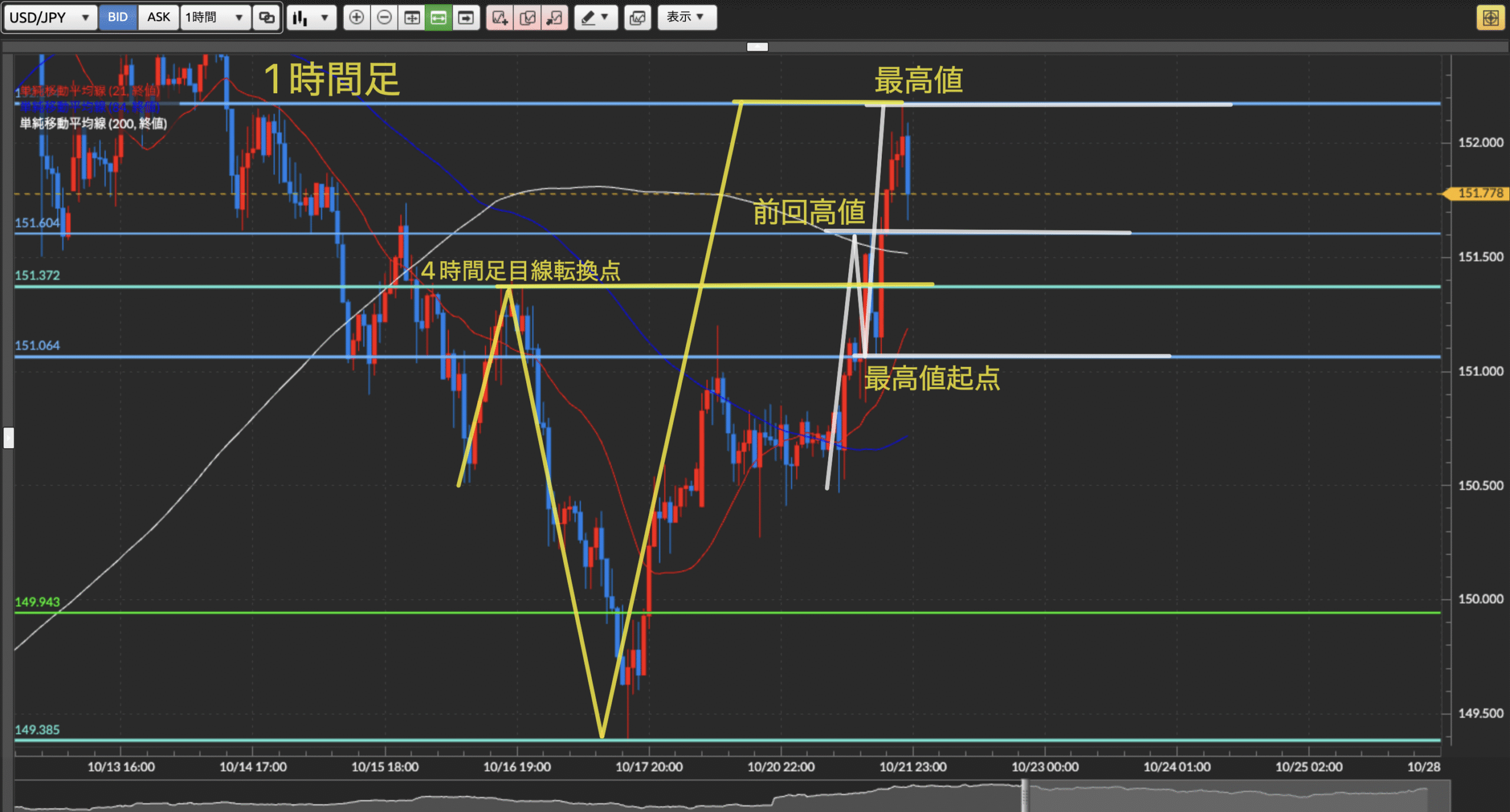 押し目の最有力候補は4時間足の目線転換点かなと思ってます!