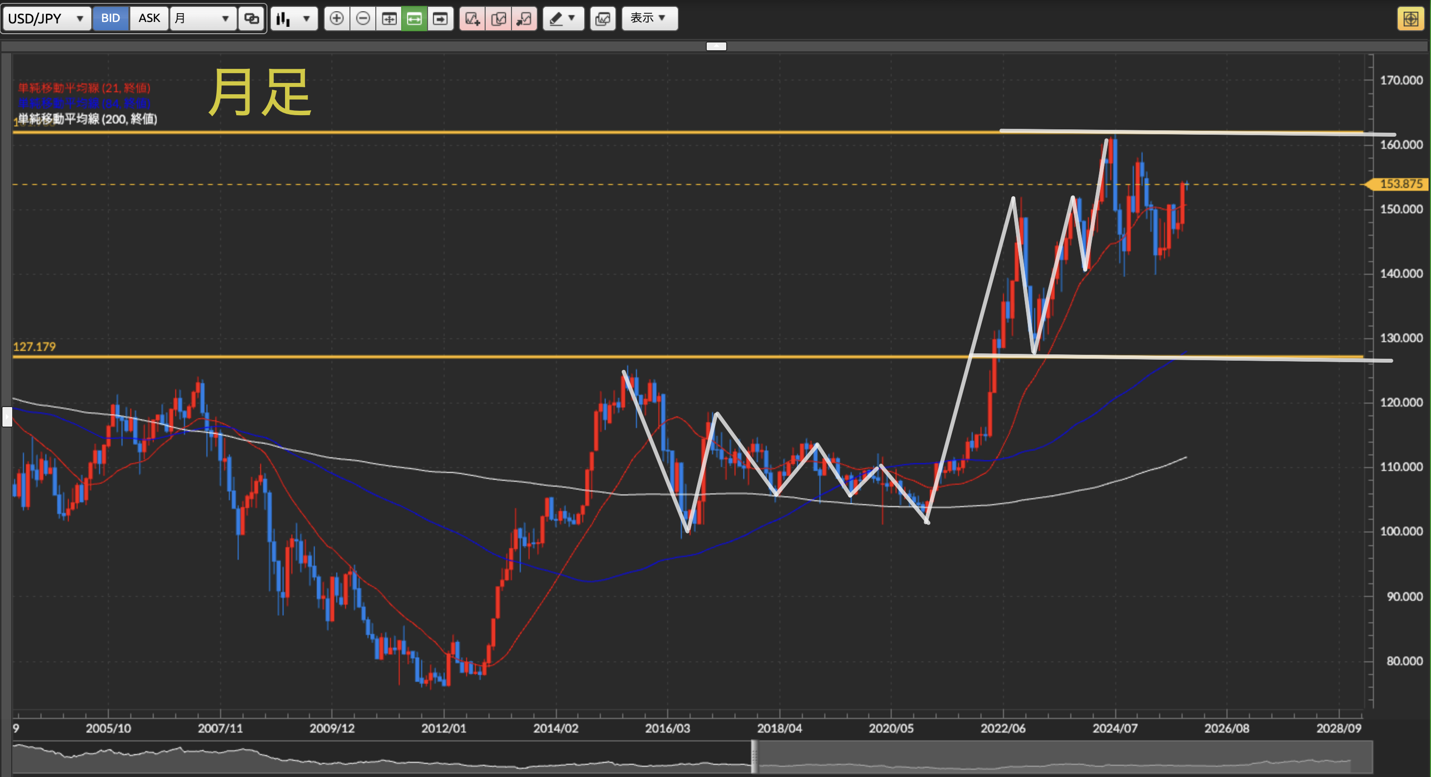 ・月足はチャート上で目立つ過去の高値と安値だけ意識しておく。