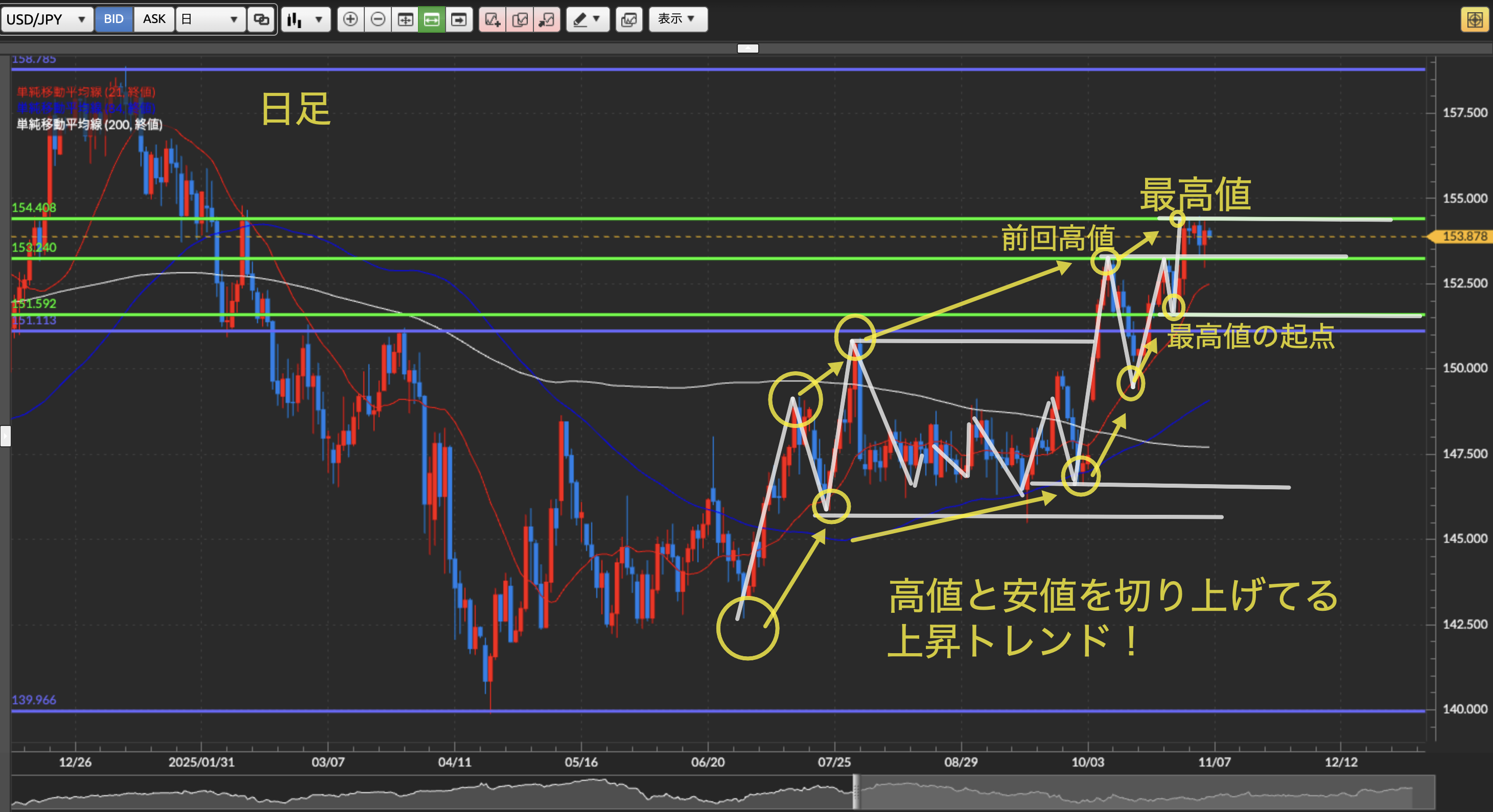 高値と安値を切り上げてる状態は上昇トレンドでしたね!