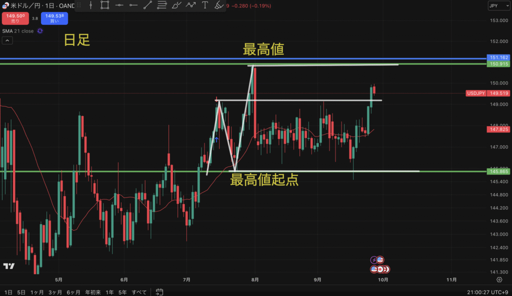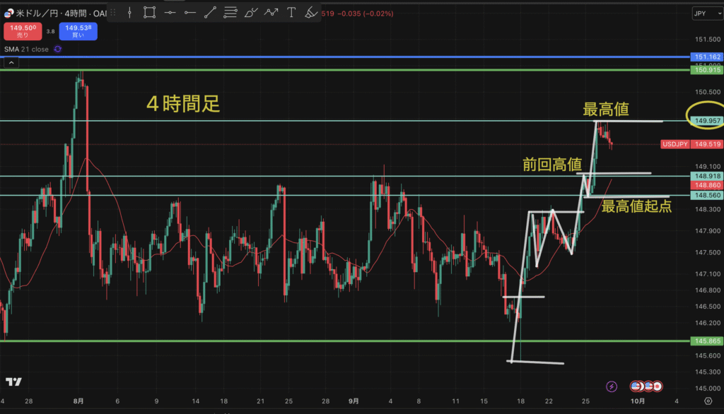最高値すぐに150円のキリ番があるので欲張りすぎないように!