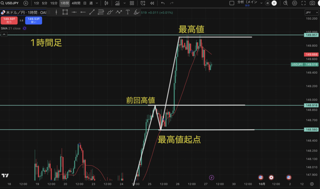 ダウ理論を基に目線の概念、水平線の引き方を理解しているものとして進めさせて頂きます。