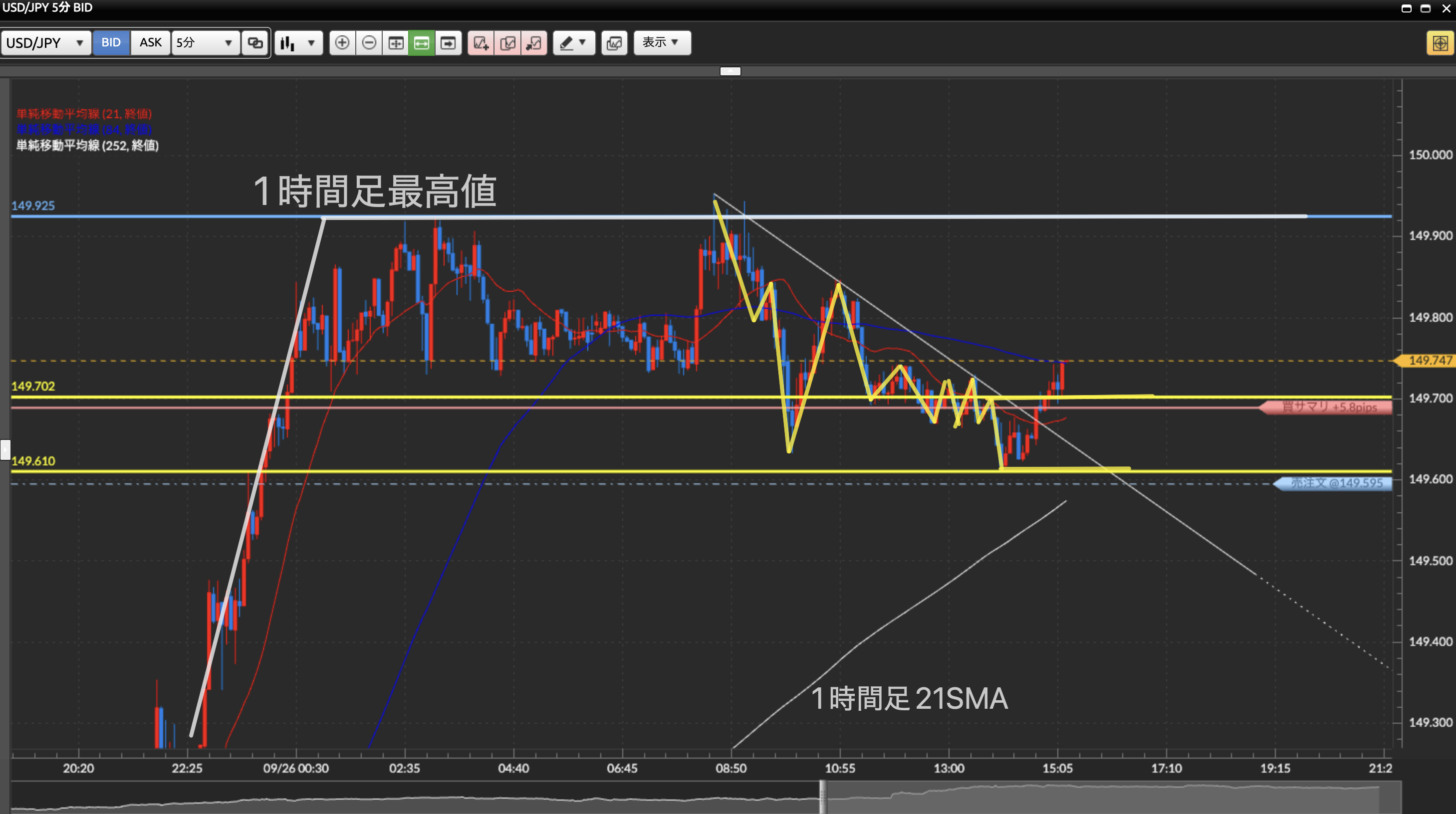 基本的にはこのラインまで引きつけて5分足での下降が崩れるor上昇に転じるタイミングを狙います!