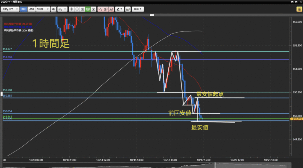 1時間足でも下降トレンド中。