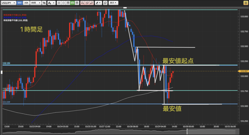 利確目標:1時間最安値