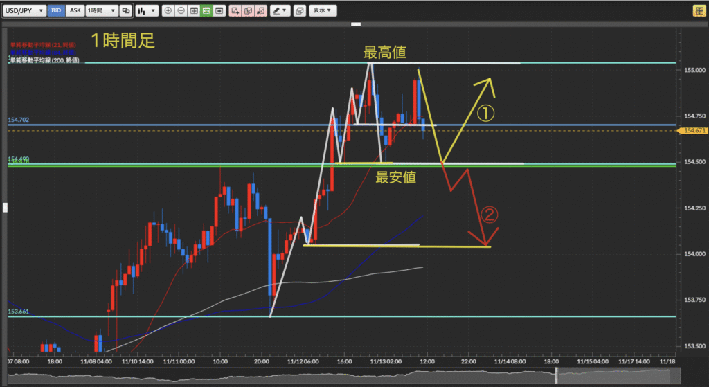 【ドル円】11/13 環境認識 上昇継続?下降に転換?