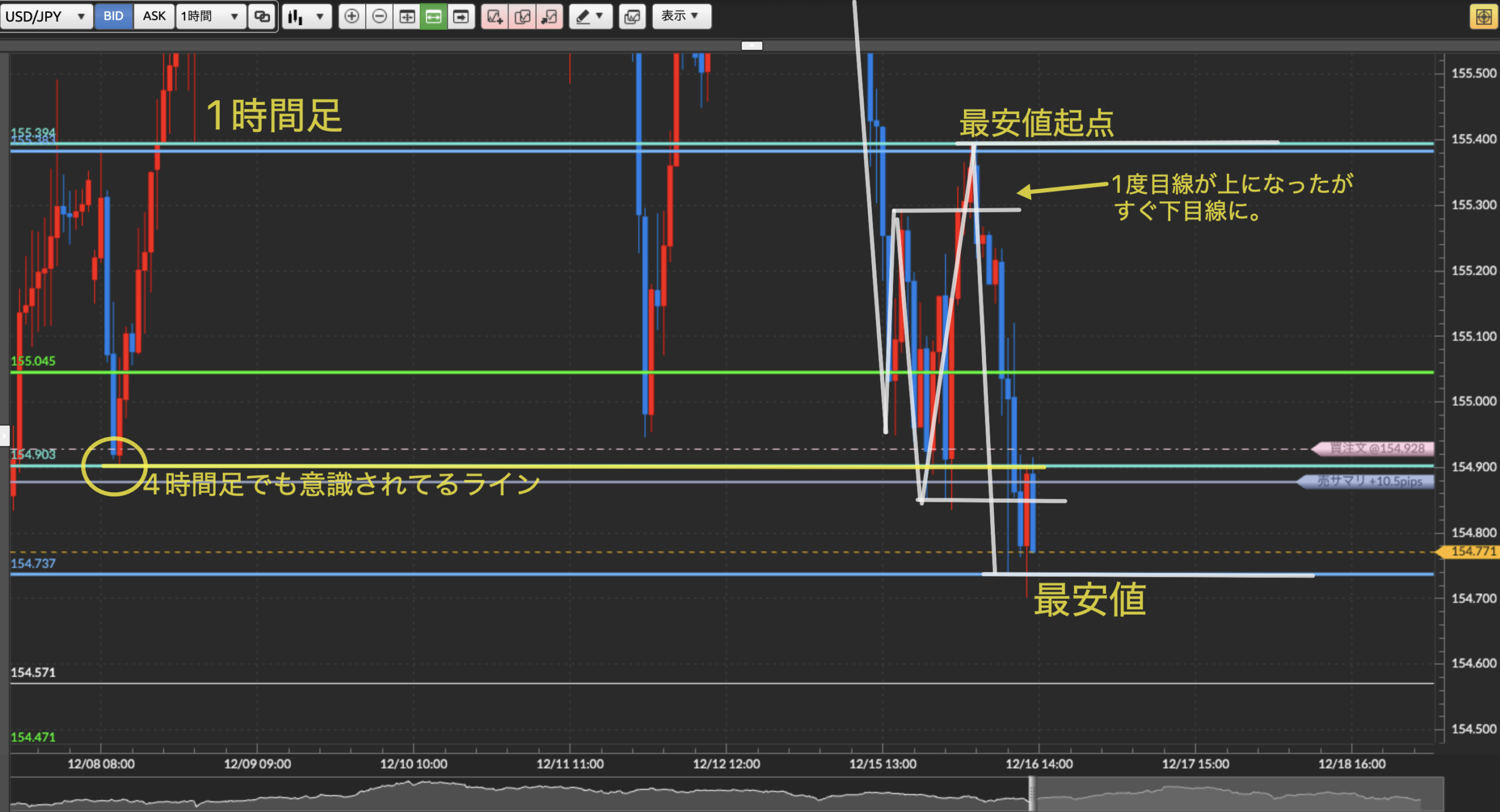 4時間足のラインor1時間足起点付近での戻り売り