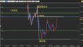 1時間足で一度上目線になったがすぐ下目線に転換。起点終点が広く少し迷いのある相場。