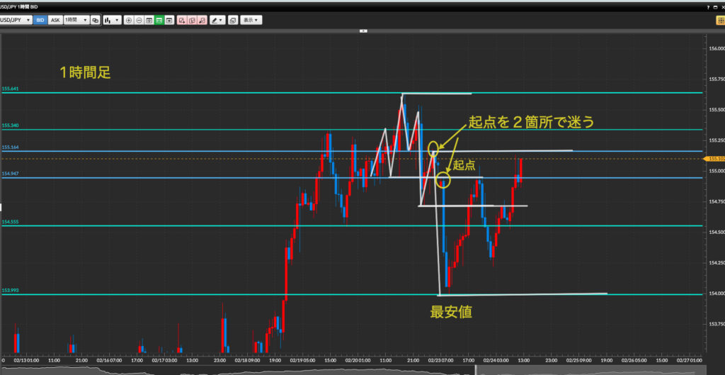 1時間足で目線は↓
