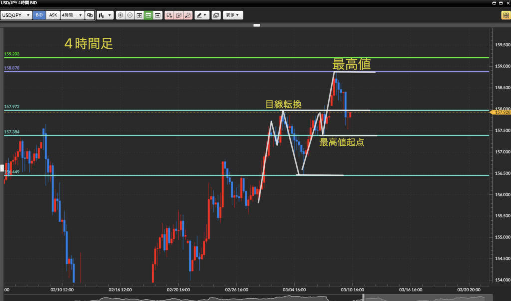 4時間足で上目線。