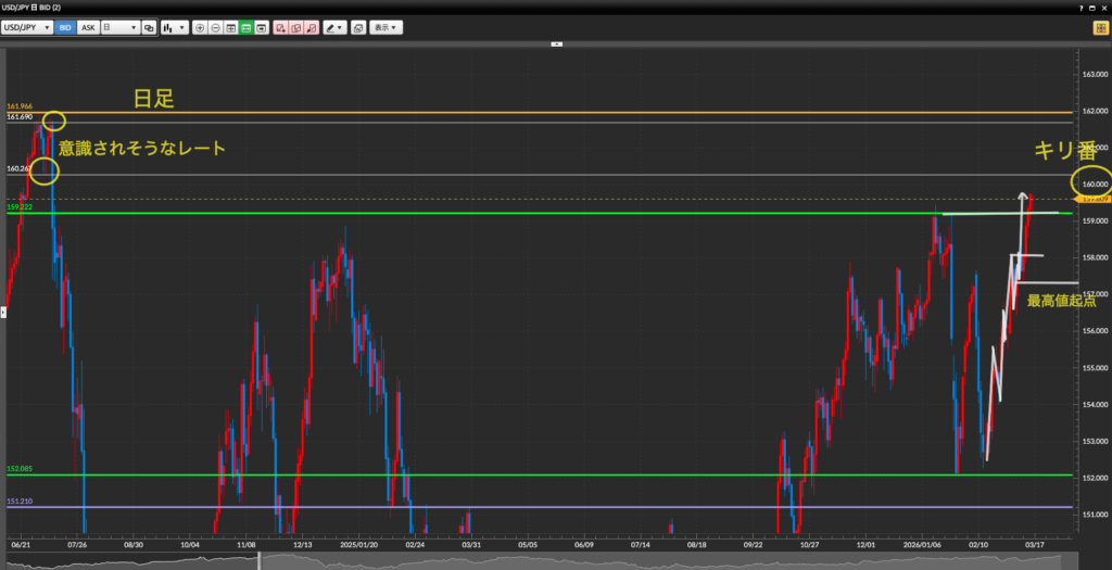 それでは、2026年3月16日のドル円相場の戦略いきます!