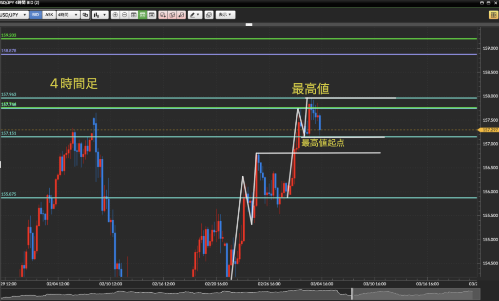 ダウ理論を基に目線の概念、水平線の引き方を理解しているものとして進めさせて頂きます。