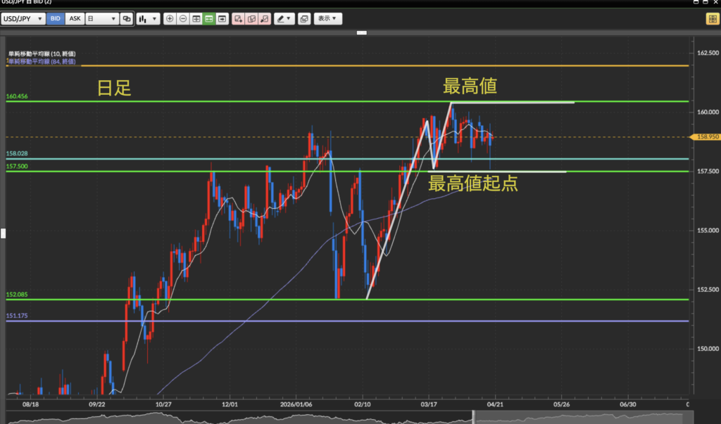 ついに最高値起点を下に抜けて下目線に!全体的にみるとレンジではあるが、ジリジリ高値安値を切り下げてる形にも見えますね。