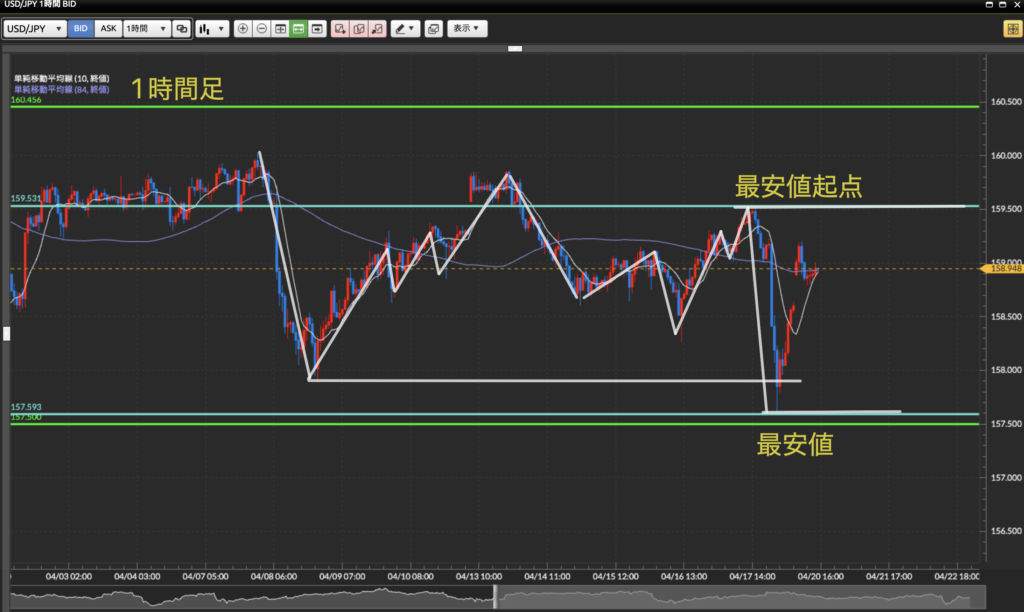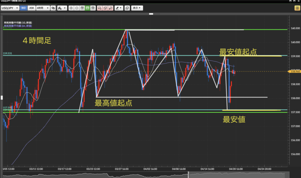 ダウ理論を基に目線の概念、水平線の引き方を理解しているものとして進めさせて頂きます。