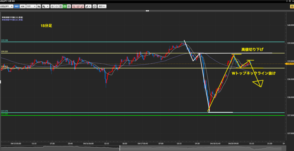 ネックライン抜けや、抜けた後のある程度戻しを待ってから入るのもアリかと。